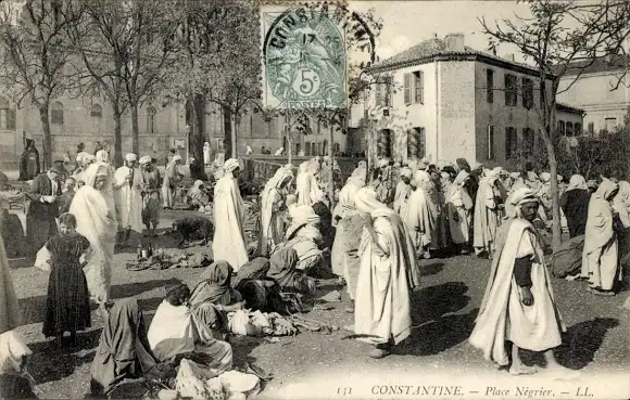 Ak Constantine Algerien, Place Négrier, Handelsplatz