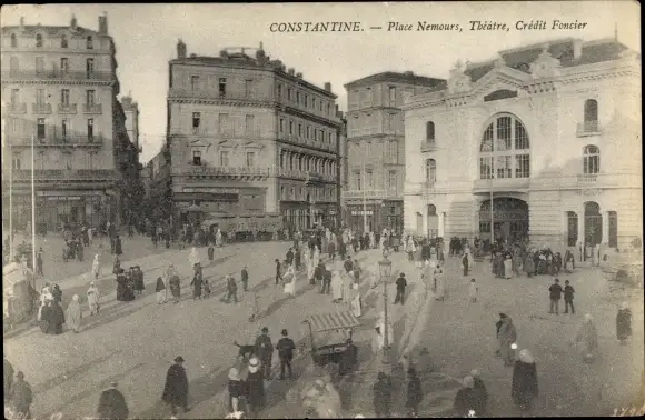 Ak Constantine Algerien, Place Nemours, Theatre, Credit Foncier