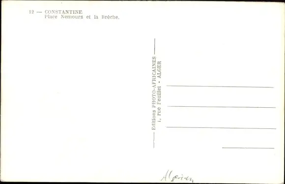 Ak Constantine Algerien, Place Nemours et la Breche, Hotel