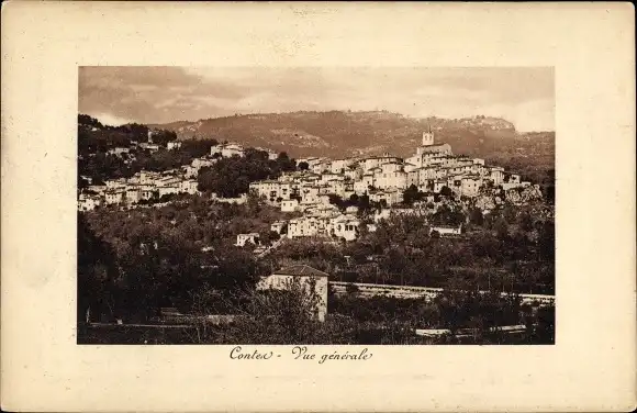 Ak Contes Alpes Maritimes, Vue generale
