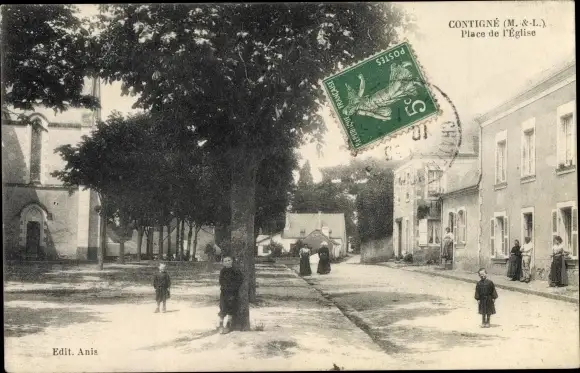 Ak Contigné Maine et Loire, Place de l'Eglise