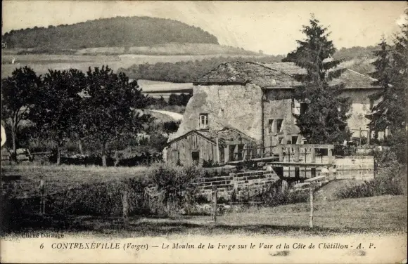 Ak Contrexéville Lorraine Vosges, Moulin de la Forge sur le Vair, Côte de Chatillon