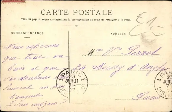 Zustand, siehe Scan, gelaufen, 1907 - ca 14 cm X 9 cm
