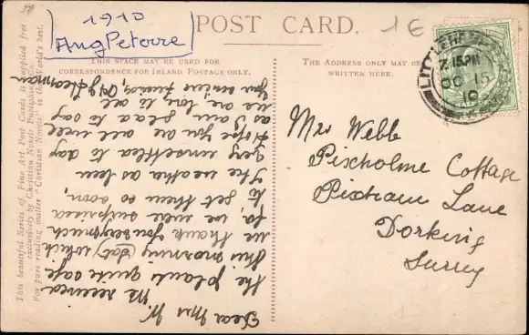 Zustand, siehe Scan, gelaufen, 1910 - ca 14 cm X 9 cm