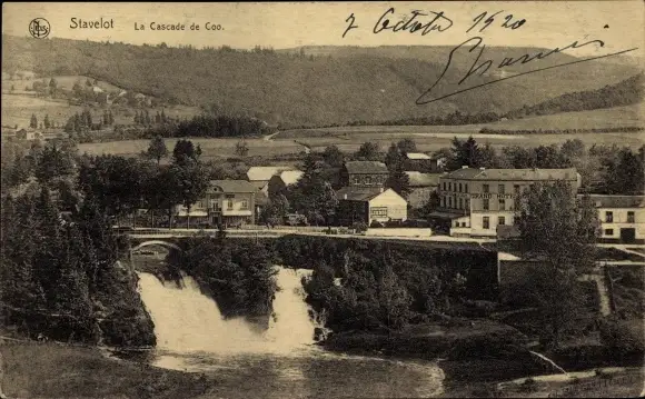 Ak Coo Stavelot Lüttich Wallonien, La Cascade et panorama, Wasserfall
