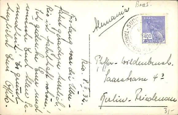 Zustand, siehe Scan, gelaufen, 1932 - ca 14 cm X 9 cm