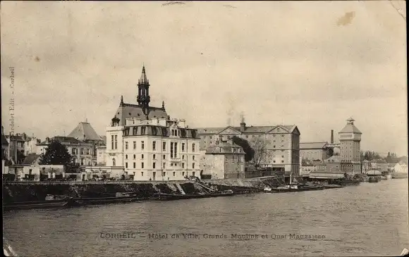 Ak Corbeil Essonne, Rathaus, Große Mühlen, Quai Mauzaisse
