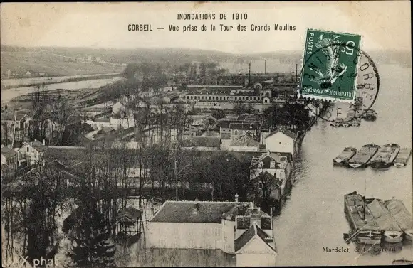 Ak Corbeil Essonne, Vue prise de la Tour des Grand Moulins