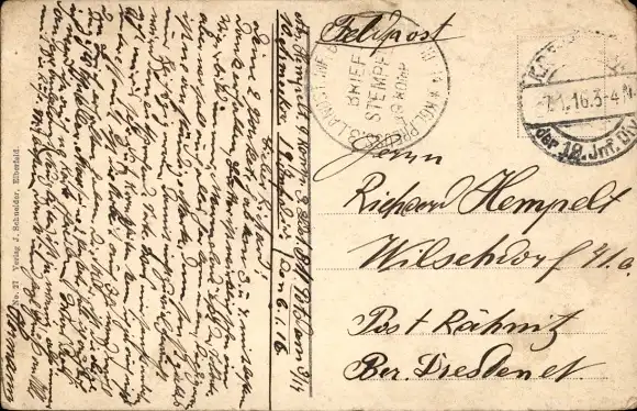Zustand, siehe Scan, gelaufen, 1916 - ca 14 cm X 9 cm