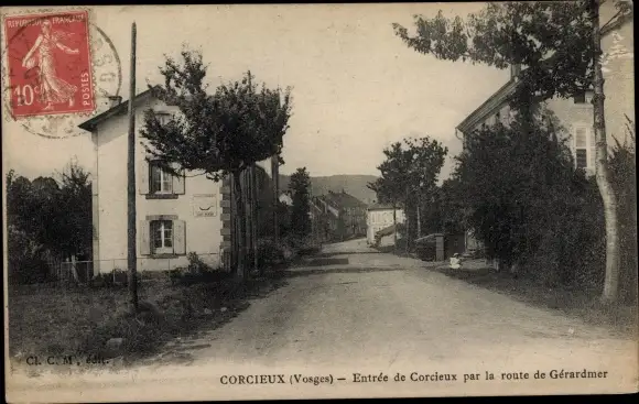 Ak Corcieux Vosges, Entree par la route de Gerardmer