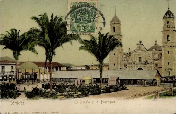 Ak Córdoba Mexico, El Zócalo y la Parroquia