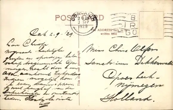 Zustand siehe Scan, gelaufen, 1929 - ca 14 cm X 9 cm
