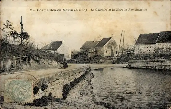 Ak Cormeilles en Vexin Val d’Oise, Calvaire, Mare la Remoucheuse
