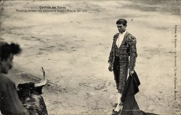 Ak Corrida de Toros, Bombita devant son adversaire mort