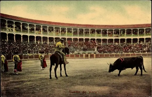 Ak Corrida de Toros, Suerte de vara, Stierkampf, Arena