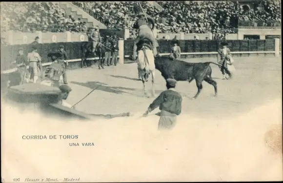 Ak Corrida de Toros, una vara, Stierkampf in der Arena, Torero