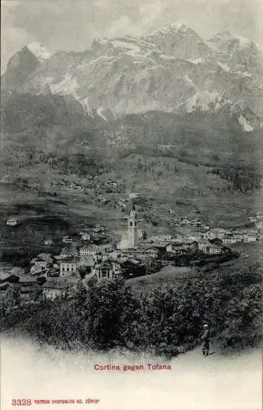 Ak Cortina d'Ampezzo Veneto, Ort gegen Tofana
