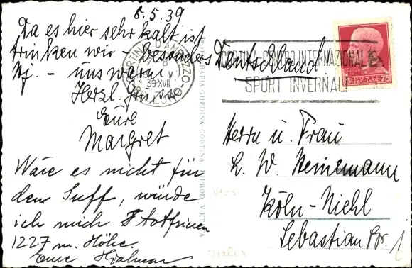 Zustand, siehe Scan, gelaufen, 1939 - ca 9 cm X 14 cm