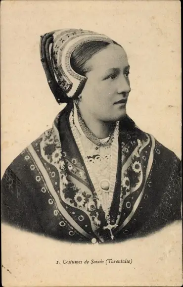 Ak Costumes de Savoie, Tarentaise, Frau in französischer Tracht