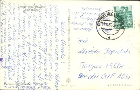 gelaufen 1960, Eckknick rechts oben, sonst guter Zustand
