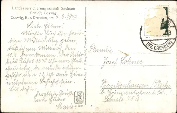 Zustand, siehe Scan, gelaufen, 1940 - ca 14 cm X 9 cm