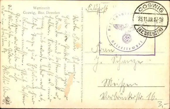 Zustand, siehe Scan, gelaufen, 1939 - ca 14 cm X 9 cm