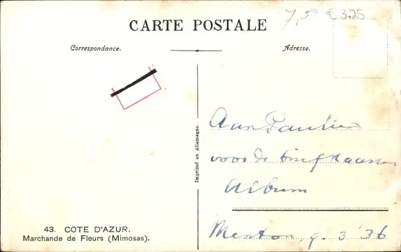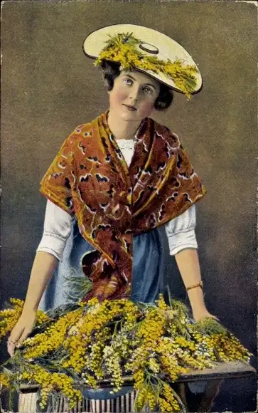 Ak Cote d'Azur, Blumenverkäuferin, Mimosen