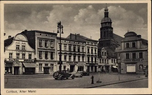 Ak Cottbus in der Niederlausitz, Alter Markt, Geschäfte