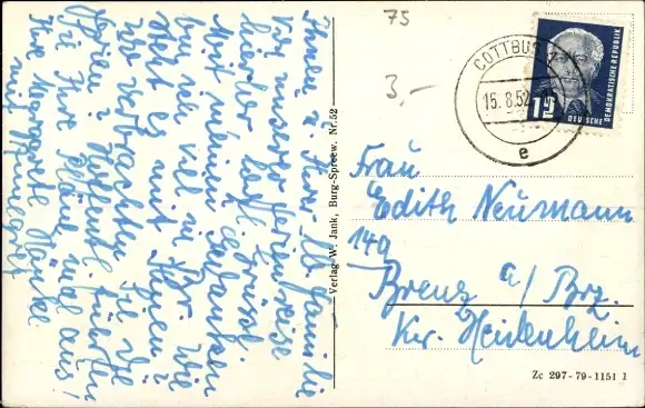Zustand, siehe Scan, gelaufen, 1952 - ca 9 cm X 14 cm