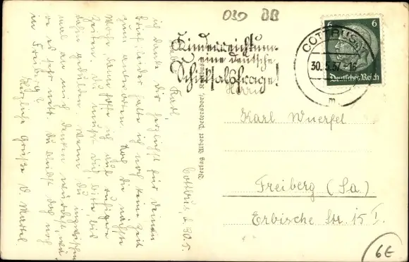 Zustand, siehe Scan, gelaufen, 1937 - ca 9 cm X 14 cm