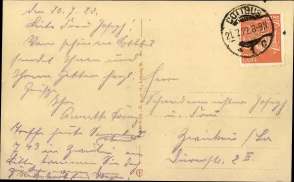 Zustand, siehe Scan, gelaufen, 1922 - ca 14 cm X 9 cm