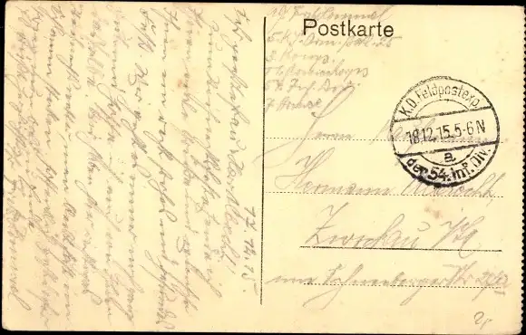 Zustand, siehe Scan, gelaufen, 1915 - ca 9 cm X 14 cm