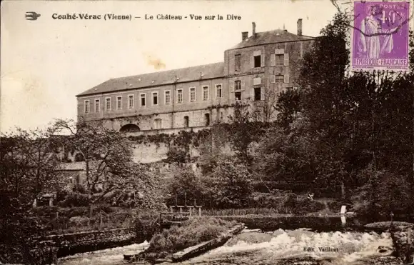 Ak Couhé Vérac Vienne, Chateau, Vue sur la Dive