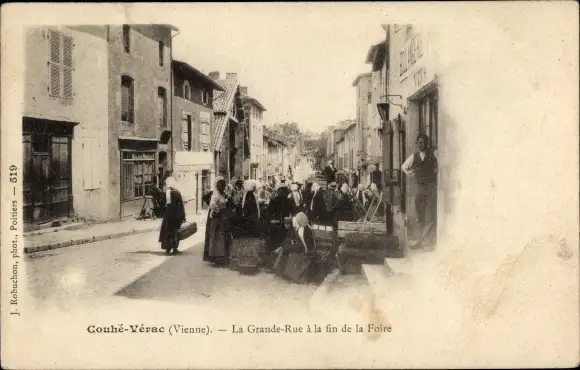 Ak Couhé Vérac Vienne, La Grande Rue a la fin de la Foire