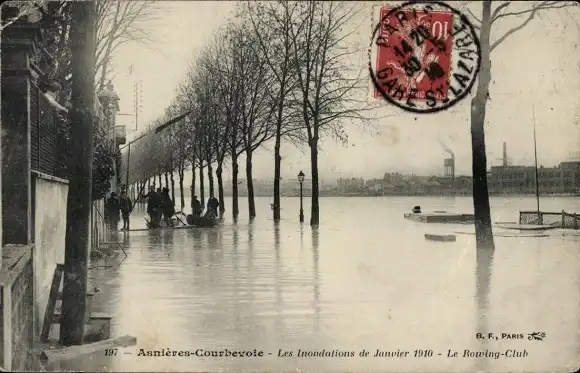 Ak Courbevoie Hauts de Seine, Hochwasser Januar 1910, Rowing Club