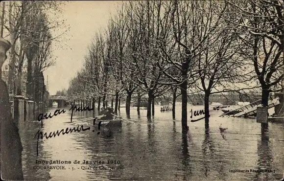 Ak Courbevoie Hauts de Seine, Inondations de Janvier 1910, Quai