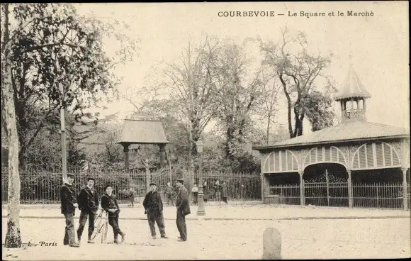 Ak Courbevoie Hauts de Seine, Le Square et le Marché