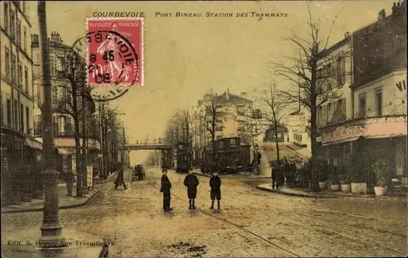 Ak Courbevoie Hauts de Seine, Pont Bineau, Station des Tramways