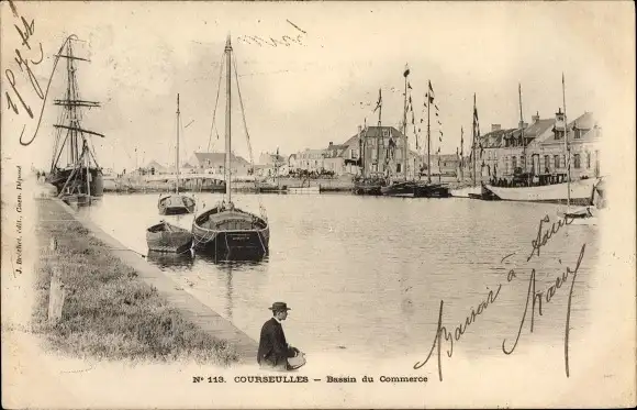 Ak Courseulles Calvados, Bassin du Commerce, Segelschiffe