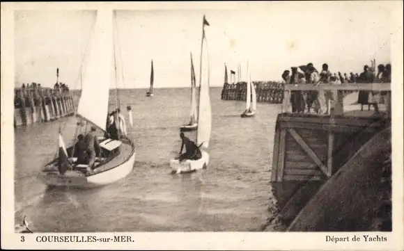Ak Courseulles Calvados,départ des Yachts, Segelboote, Zuschauer