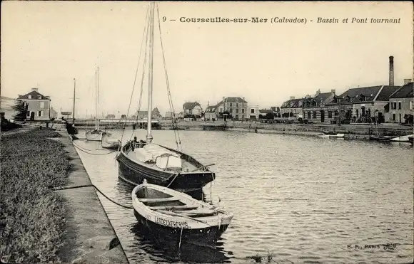 Ak Courseulles sur Mer Calvados, Bassin et pont tournant