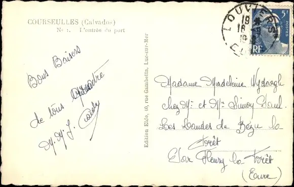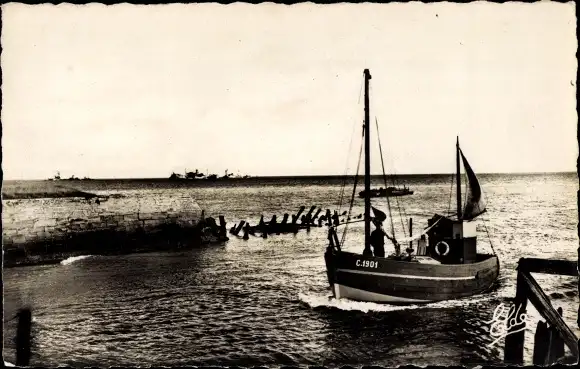 Ak Courseulles sur Mer Calvados, Hafeneinfahrt, Fischerboot