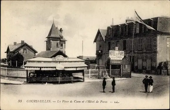 Ak Courseulles sur Mer Calvados, La Place de Caen et l'Hôtel de Parcs