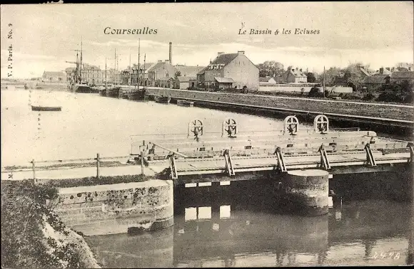Ak Courseulles sur Mer Calvados, Le Bassin et les Ecluses
