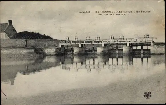 Ak Courseulles sur Mer Calvados, Les Ecluses de l'Ile de Plaisance