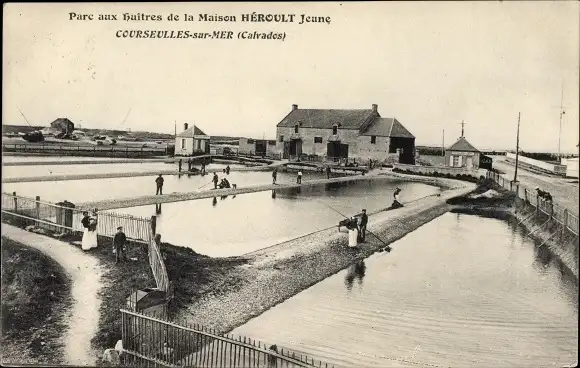 Ak Courseulles sur Mer Calvados, Parc aux huitres de la Maison Héroult Jeune
