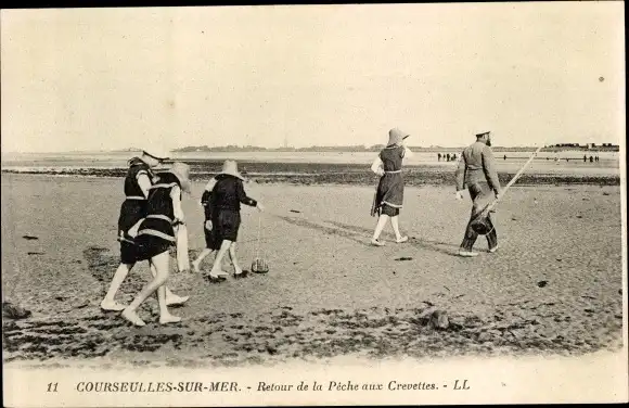 Ak Courseulles sur Mer Calvados, Retour de la Peche aux Crevettes