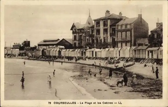 Ak Courseulles sur Mer Calvados, Strand, Kabinen