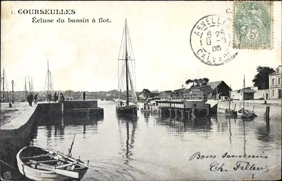 Ak Courseulles sur Mer Calvados, écluse du bassin à flot