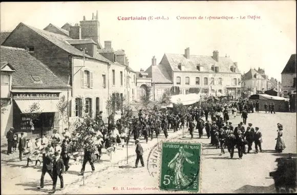 Ak Courtalain Eure-et-Loir, Concours de Gymnastique, Le Defile